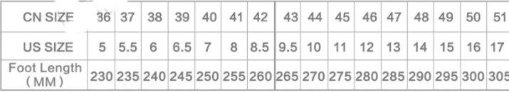 Size: 38, 39, 40, 41, 42, 43, 44, 45, 46, 47, 48
